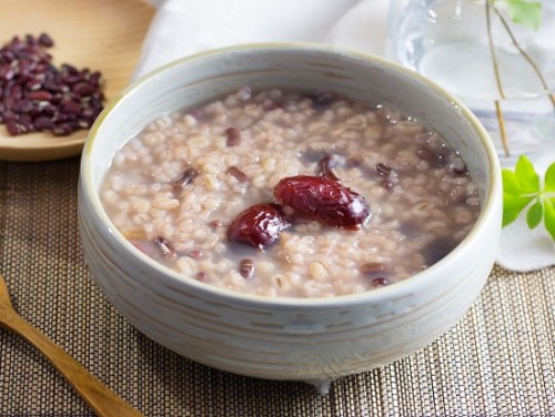 Nguyên liệu: Ý dĩ nhân 20g, đậu đỏ 30g, thổ phục linh 30g, gạo tẻ 100g.